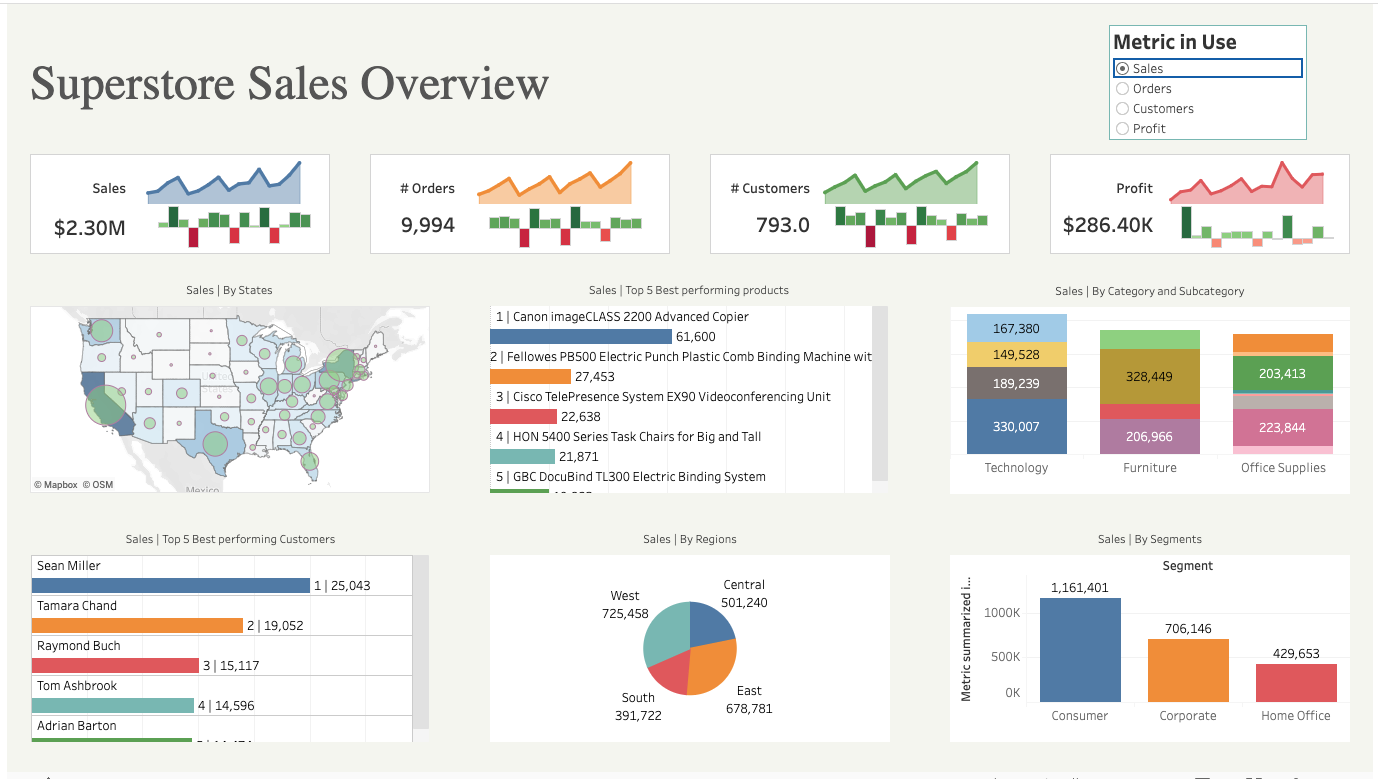 Create an interactive dashboard in Tableau to draw insights into the overview of superstore sales.